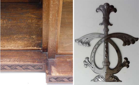 Lokalisierung - Aufbewahrung - privat Inventarnummer - Bearbeitungszeit - März 2009 Aufgaben - Wiederherstellen einer intakten Oberfläche, Reinigen der Metallbeschläge, Neuverleimung gelöster Teile ▸ Kurzbeschreibung ▸ Kurzbeschreibung der Schäden ▸ Kurzbeschreibung der Bearbeitung KURZBESCHREIBUNG DER SCHÄDENDer Oberflächenüberzug des Möbels war durch den Gebrauch stark verschmutzt sowie durch die Alterung verbräunt. Weiterhin waren eine Vielzahl von Abnutzungen und Kratzern festzustellen. Die Oberfläche der Metallbeschläge war im Laufe der Zeit dunkel „angelaufen“. Als weiterer Schaden waren einige, von der Konstruktion gelöste Zierelemente zu verzeichnen. |